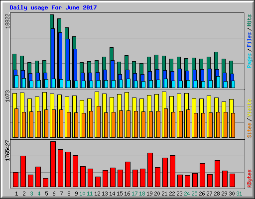 | Day | Hits | Files | Pages | Visits | Sites | KBytes | ||||||